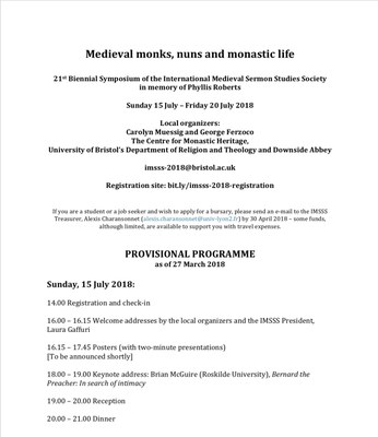 21st Biennial Symposium of the International Medieval Sermon Studies Society in memory of Phyllis Roberts